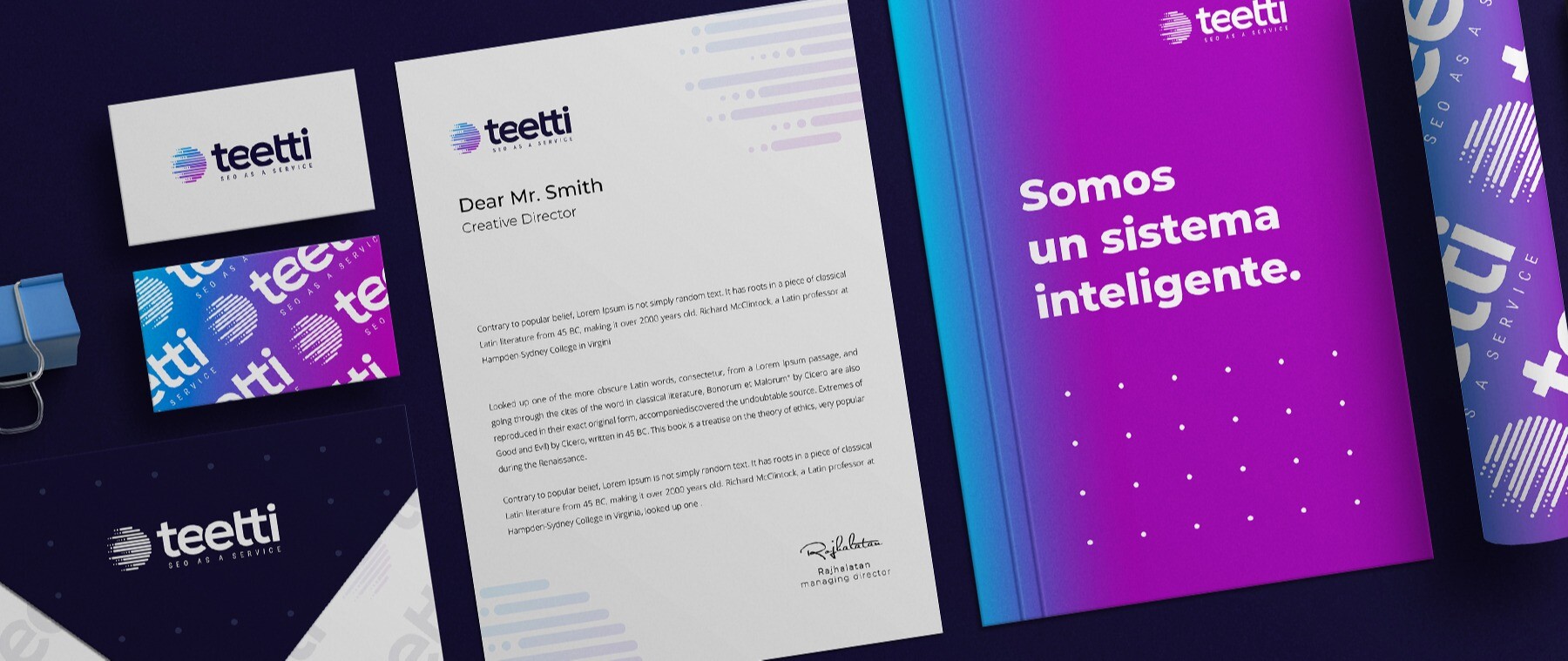 Teetti mejora los rendimientos de cualquier trabajo de estructura y contenido de un espacio web, favoreciendo a los usuarios mejorar notablemente su indexación en los buscadores. Presentamos una marca premium, sólida, que respira tecnología, con una tipografía intervenida que da personalidad a la marca y crea recordación en sus usuarios.